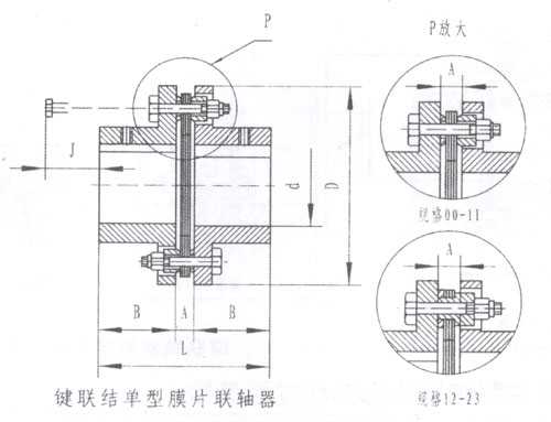 DJM型鍵聯(lián)結(jié)雙型彈性膜片聯(lián)軸器主要參數(shù)及尺寸
